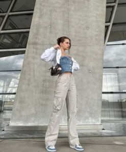 These figure-hugging cargo jeans are a must-have for every occasion. These jeans can be dressed up with a cute crop top and shoes for an evening look or down with a t-shirt and sneakers for a casual approach.