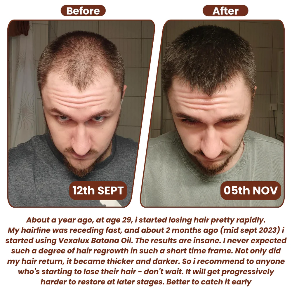 Our 100% PURE BATANA OIL, RESEARCH BACKED & CRUELTY FREE growth blend is designed to support thicker, denser, fuller looking hair.